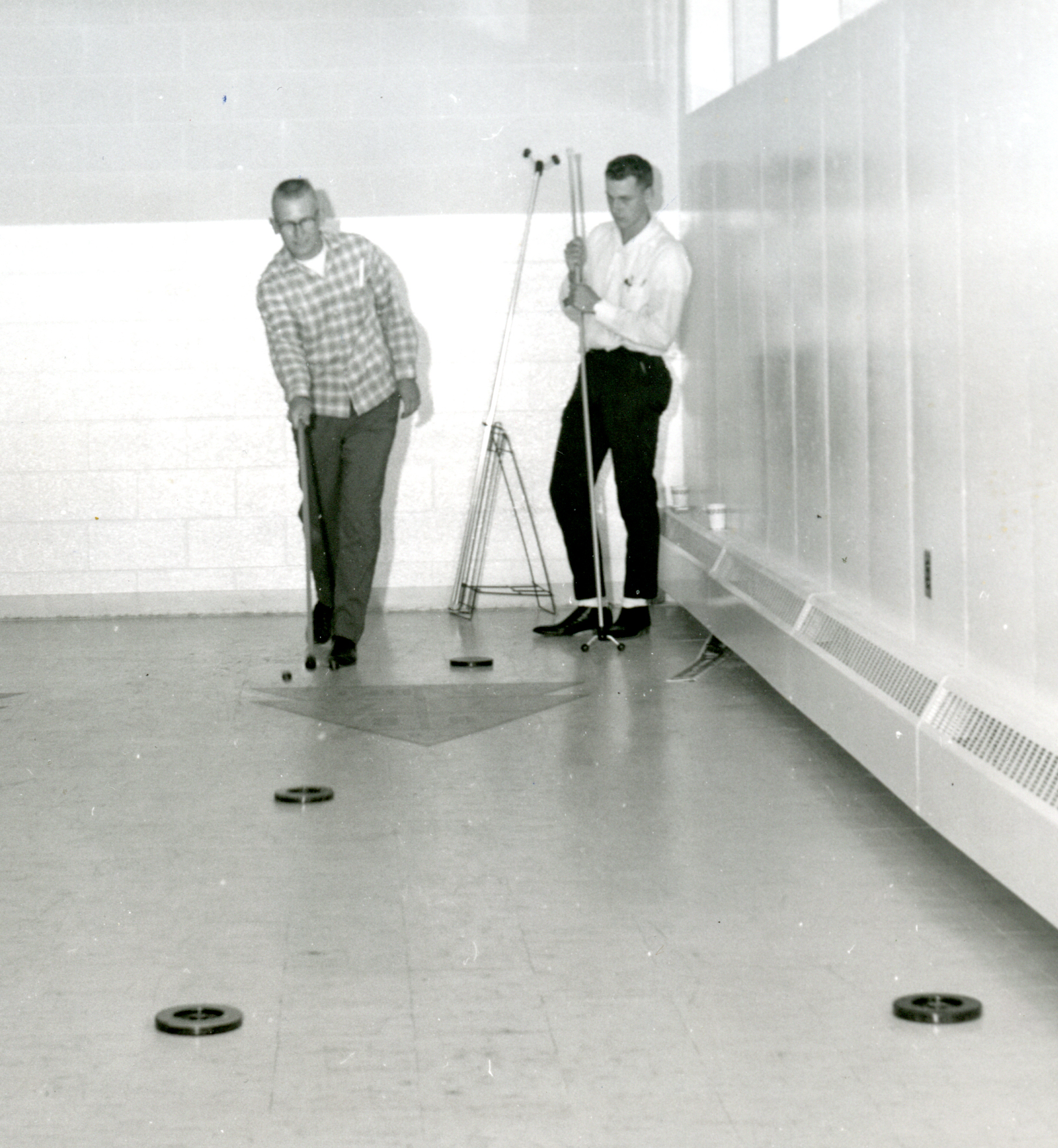 - The $800,000 Dorm-Student Center (West Hall) neared completion. It opened on Sept. 30, 1963, with “housing for 168 students, a cafeteria serving 325 … [and] recreation facilities including table tennis, shuffleboard (see photo below), and billiards.” NMC was the first community college in the state to provide such a dormitory for its students.