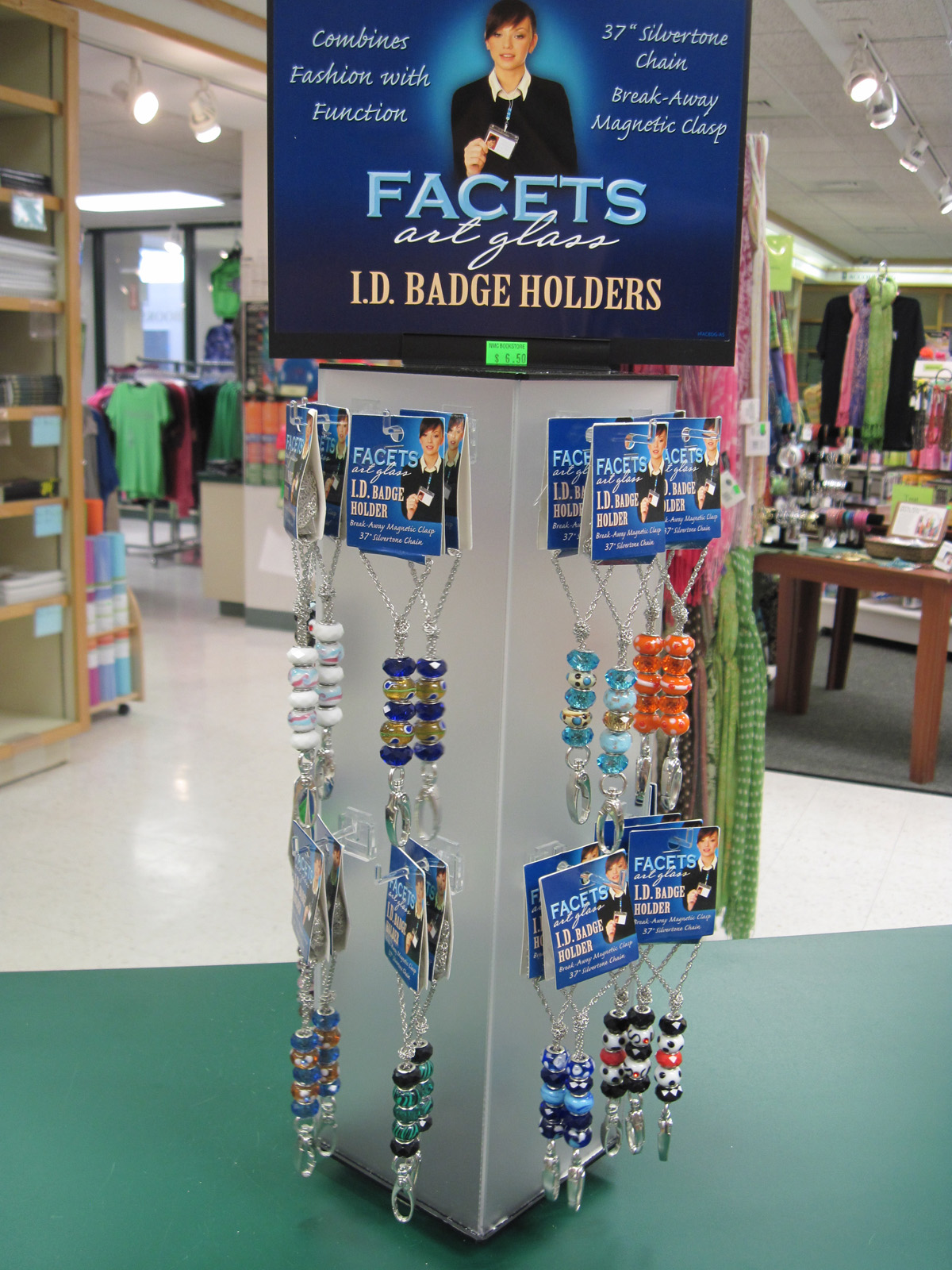 ID Holders: This holder comes on a 37″ silver chain with a breakaway magnetic clasp. Has that Pandora-like look. Retail $ 6.50.