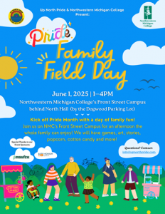 NMC will host a Family Field Day in partnership with Up North Pride from 1–4 p.m. on Sunday, June 1 behind North Hall by the Dogwood Parking Lot on NMC’s Front Street Campus.