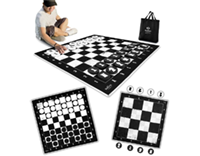 Play a classic game of checkers anywhere on this giant 4×4 ft vintage-style canvas checkerboard! Then, flip the discs to battle your opponent in chess. Finally, flip over the mat to play chess tac toe, a simple and strategic game, perfect for all ages!