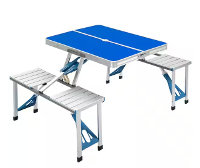 The table is made with light-weight aluminum making it easy to pack up and carry – when folded the table forms a self-carry case that can be stored almost anywhere. It also comes with a built-in hole in the center of the table to hold an umbrella for shade. Whether planning a picnic in the park, camping or just enjoying your own backyard, this table makes it easy to provide seating for you and your crew!