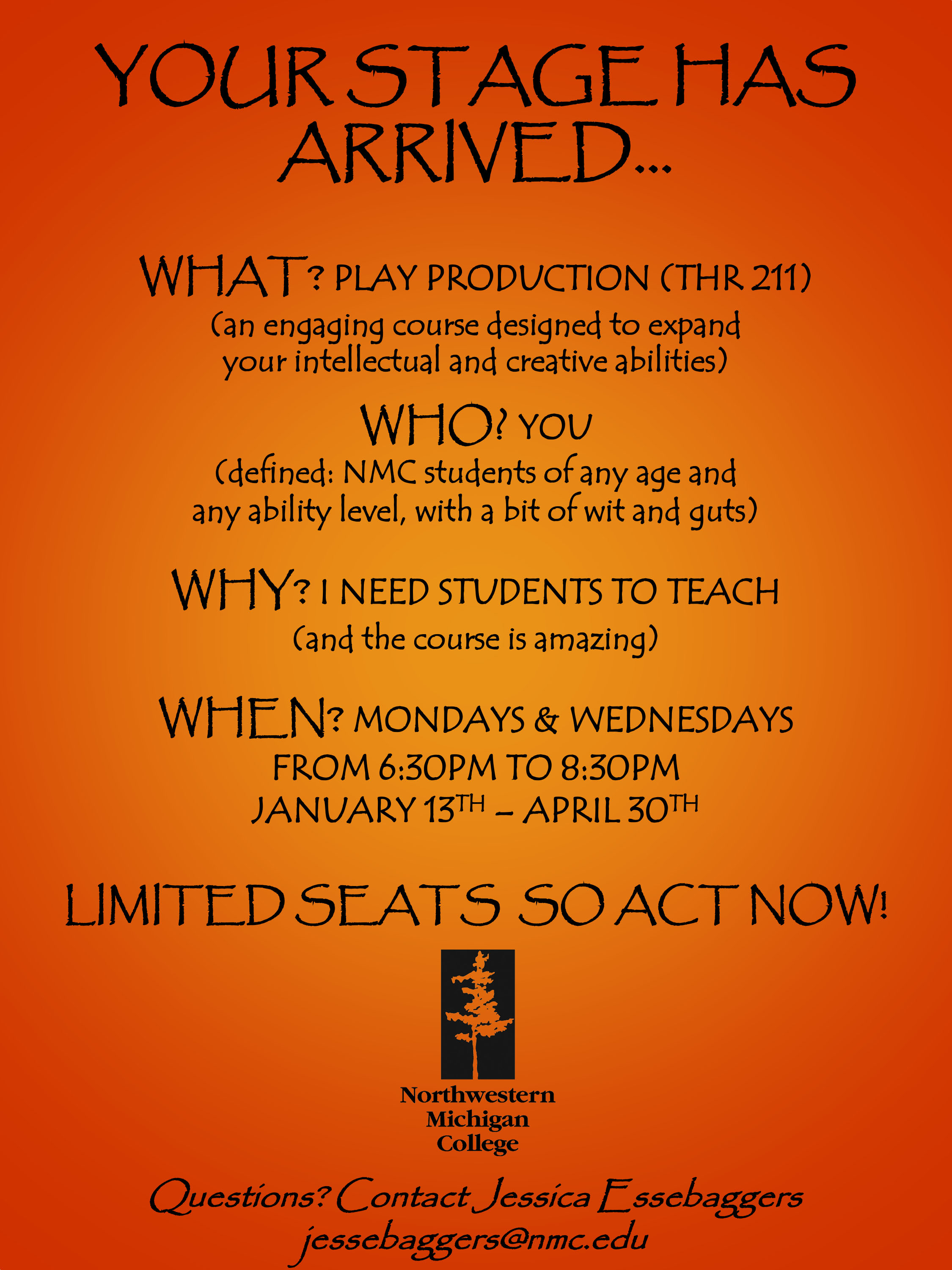 Are you a budding actor? Is the theater your second-home? Then your stage has arrived! Make plans to take Play Production (THR 211) a new class being offered in the spring 2014 semester!