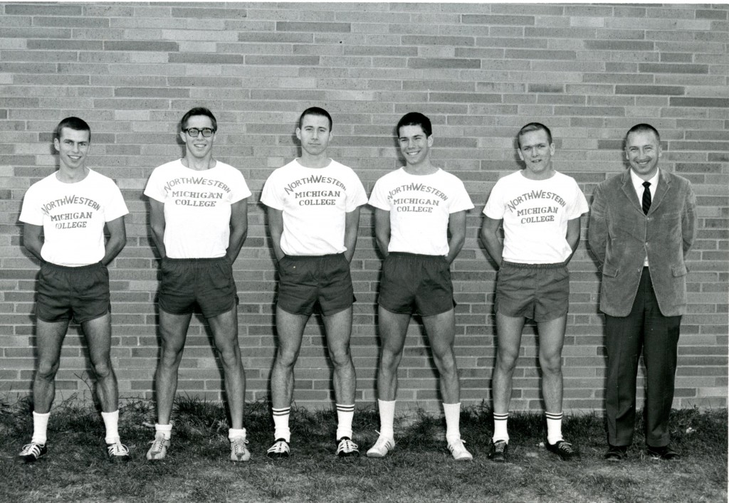 1962 Cross Country team of Bob Rothermel, Larry O’Heren, Paul Steusel, Larry Cummings, Jim Frasier, and Coach Walt Beardslee.